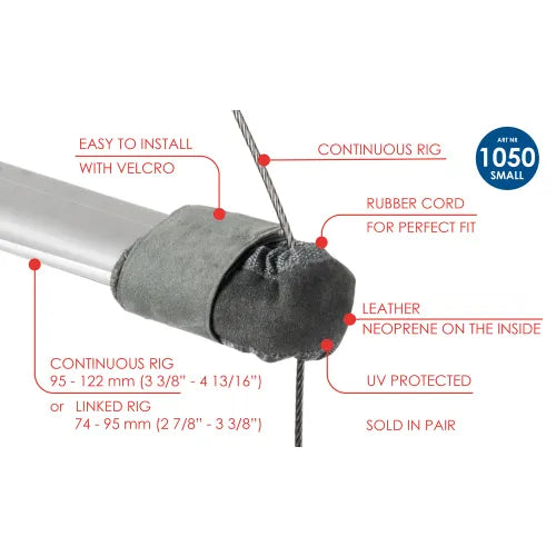 Spreader boots made of UV-resistant durable leather. A rubber cord at the edge enables the boot to fit well regardless of the design of the spreaders. The interior is lined with neoprene for an especially good fit and gives a soft surface against the sail. The spreader boot end cap protects your sails. The spreader is delivered with an extra long velcro for safe attachment and fits wide spreader arms. The spreaders are sold in pairs, available in 4 sizes.