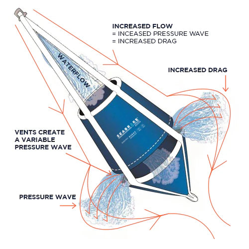 - Seabrake has twice the drag as conventional sea anchors/drogues